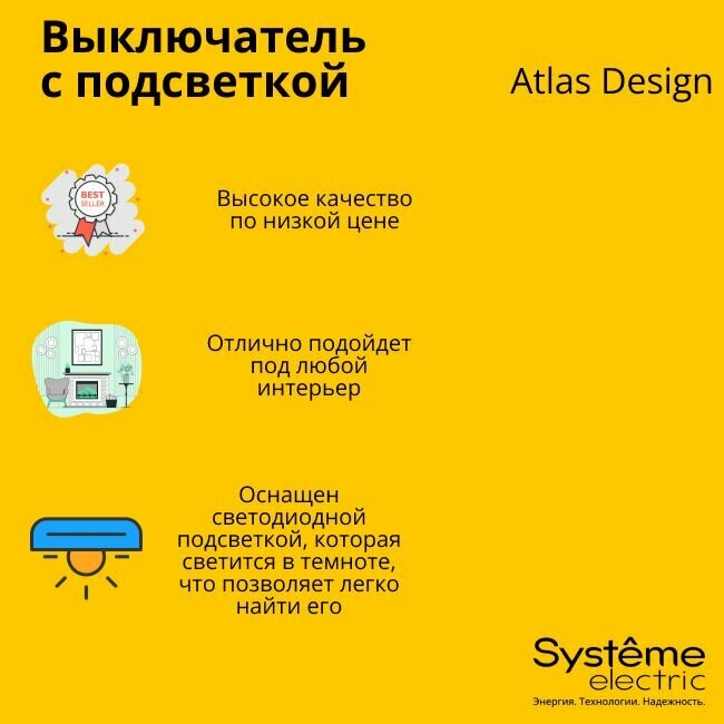 Сохранить10 шт. / Двухклавишный выключатель с подсветкой Systeme Atlas Design (Карбон) интересное:
