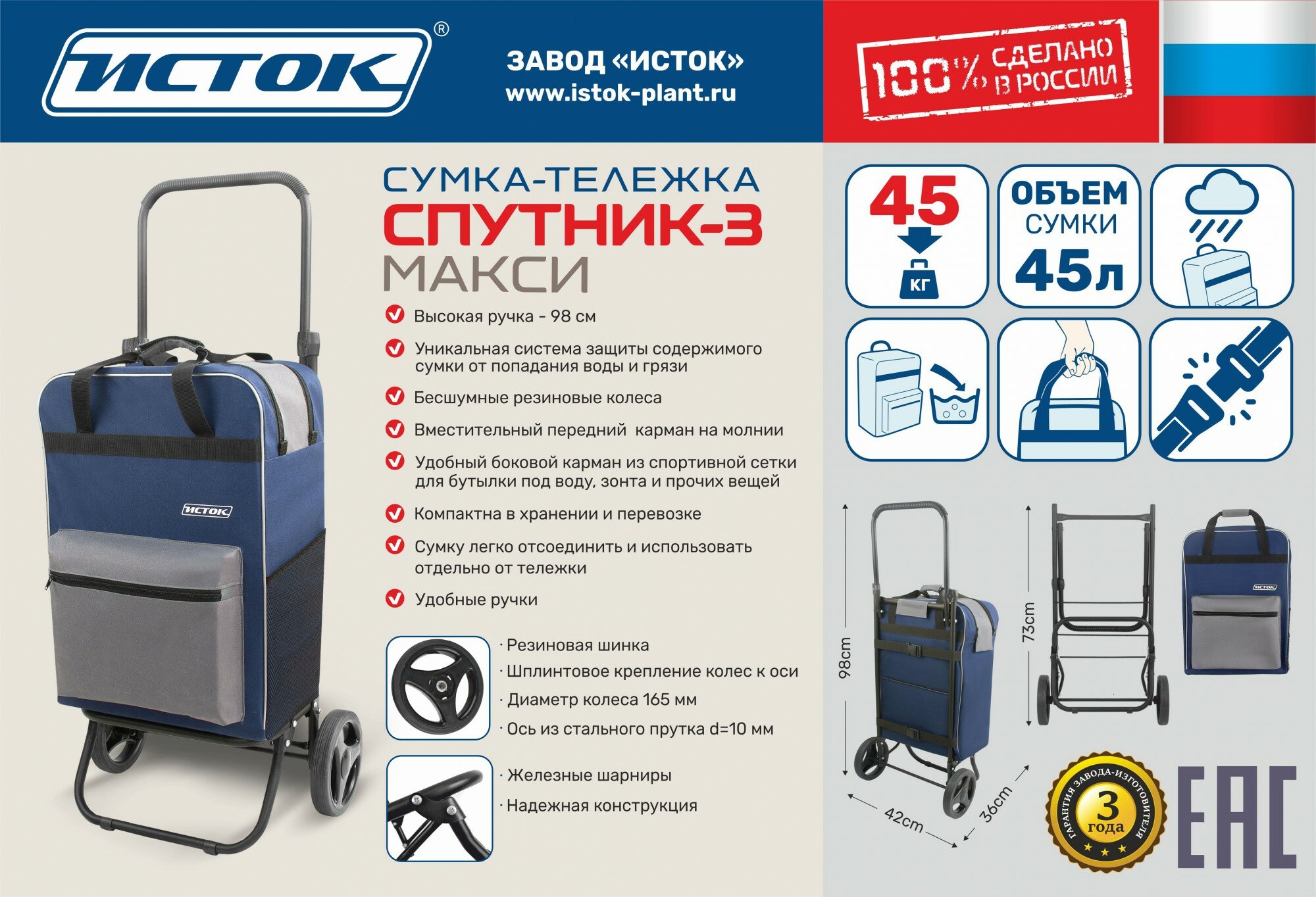 Сумка-тележка исток Спутник 3 Макси СТМ31, боковой и передний карман, синий/серый, 45 кг