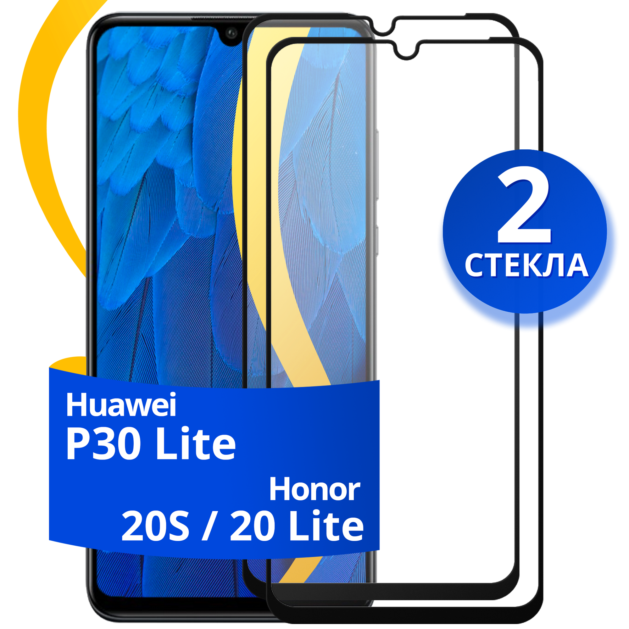 Купить Комплект из 2 шт. Глянцевое защитное стекло для телефона Huawei P30 Lite, Honor 20S и Honor 20 Lite / Хуавей Р30 Лайт, Хонор 20С и Хонор 20 Лайт