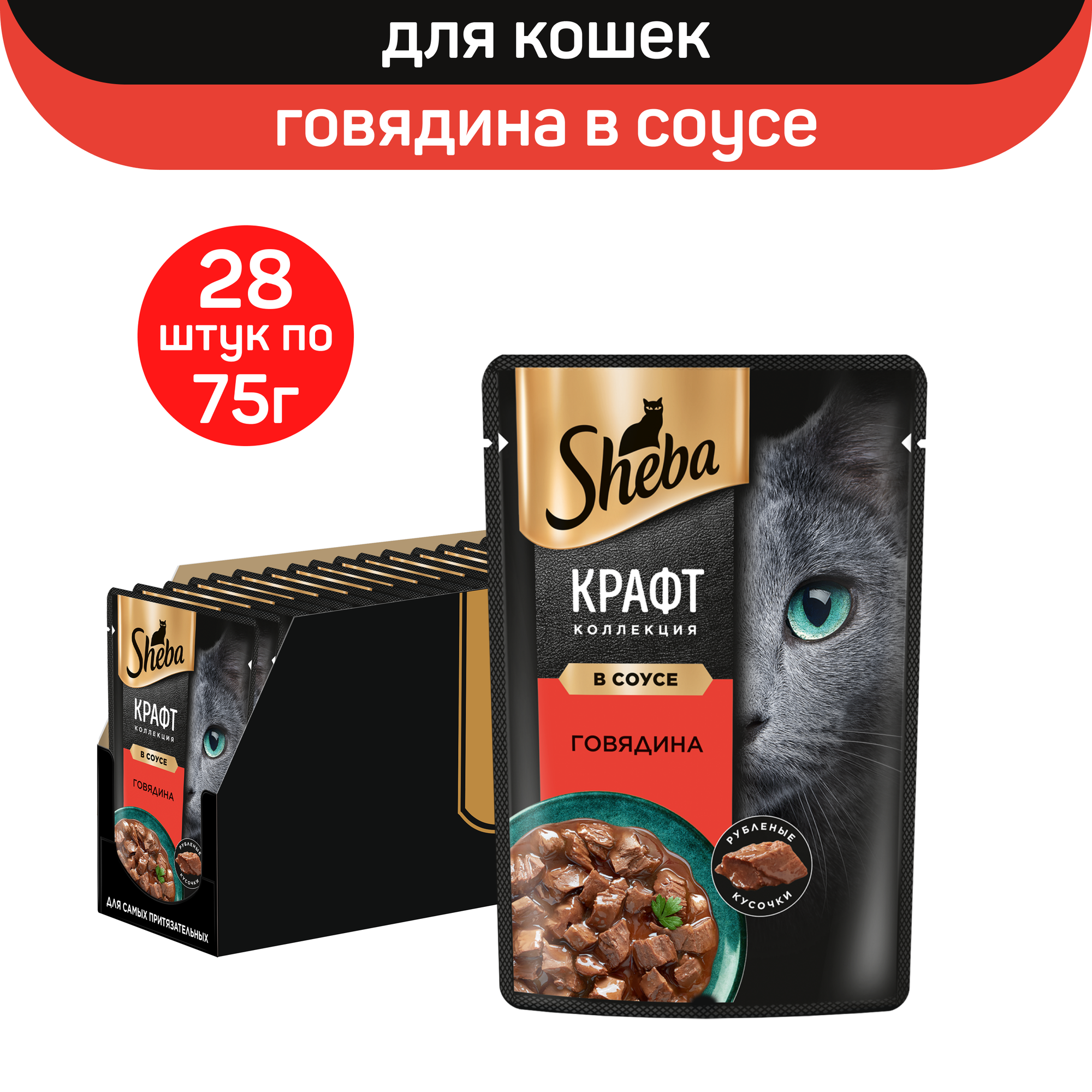 Sheba Craft Collection влажный корм для кошек рубленые кусочки с говядиной, в соусе, в паучах - 75 г х 28 шт