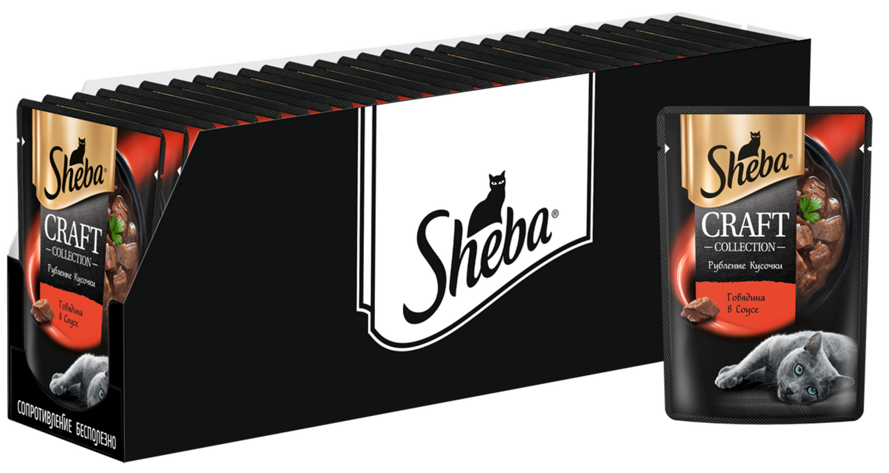 Sheba Влажный корм для кошек (паучи) CRAFT COLLECTION «Рубленые кусочки. Говядина в соусе» 1023150310244558 0,075 кг 51112 (18 шт)
