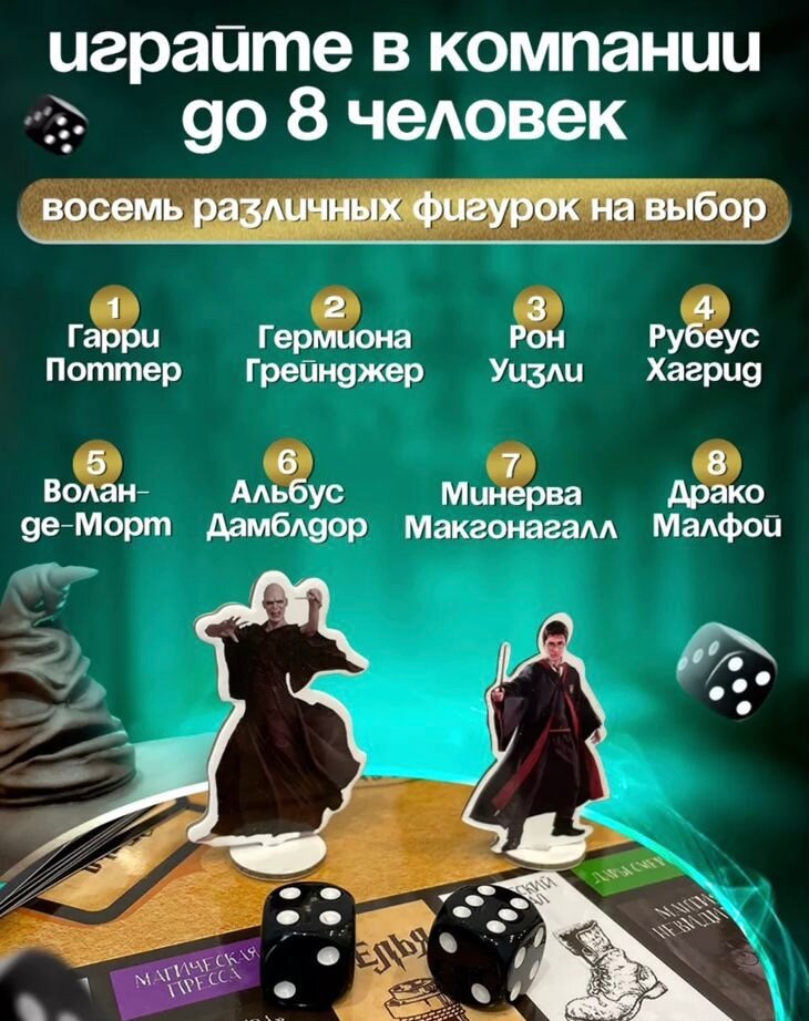 | Плюсы: | Суперская игра))) Создаёт Новогоднее настроение)) Стандартная монополия, только в стиле Гарри Поттера)) Особенно подойдет фанатам) Ребёнок счастлив, играем всей семьёй) |