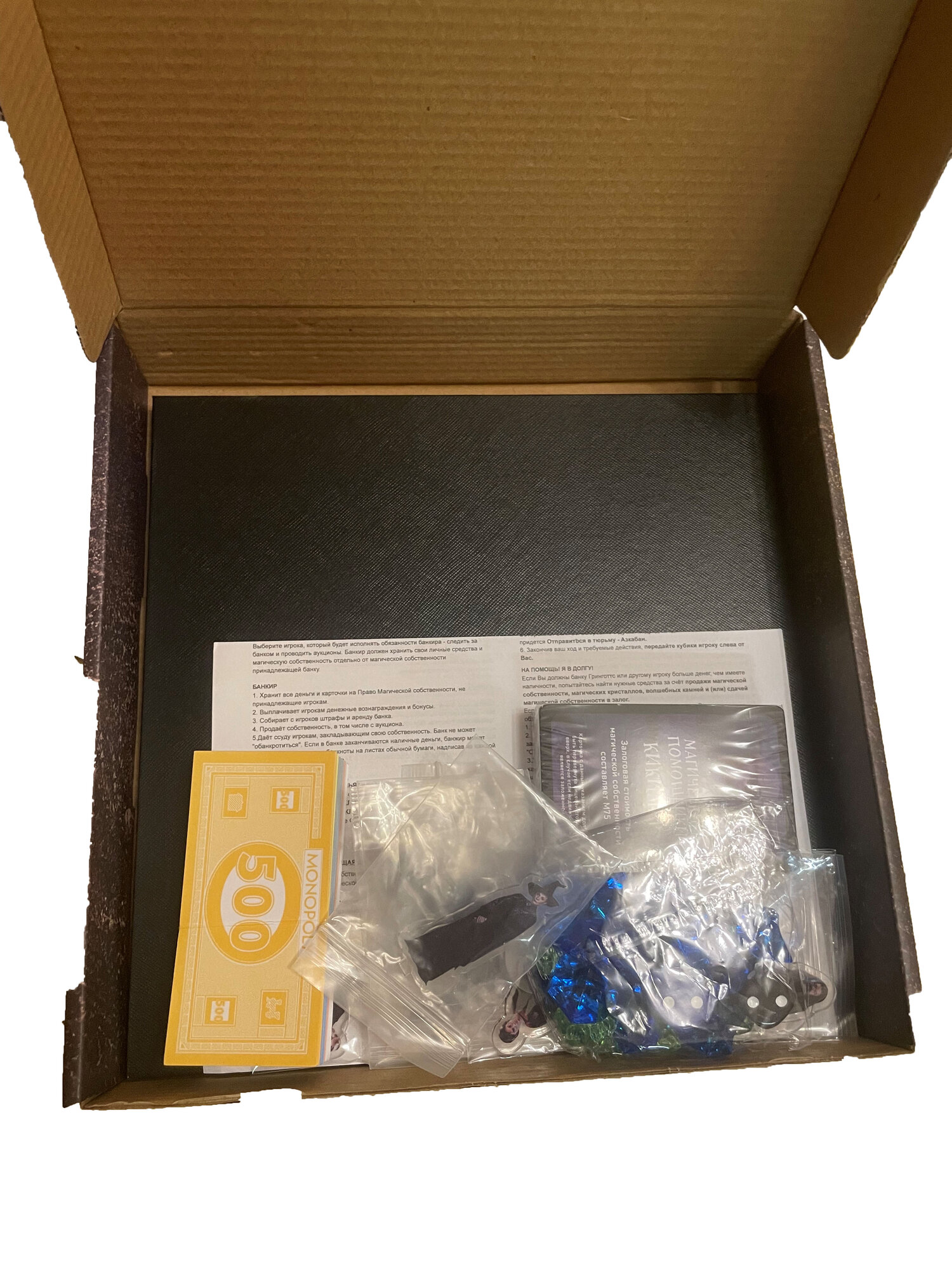 | Комплектация | 28 карточек собственности, 32 магических кристалла, 12 волшебных камней, 16 карточек с зельями, 16 карточек с заклинаниями, 4 фигурки,инструкция и кубики |