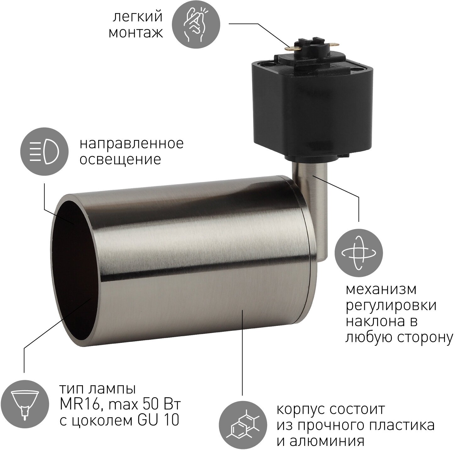 Светильник трековый TR14-GU10 SN, сатин никель Эра Б0044306