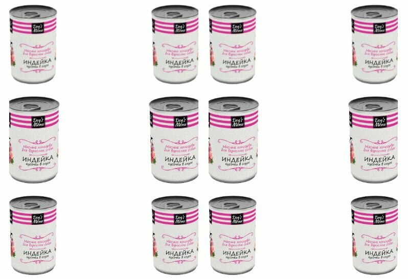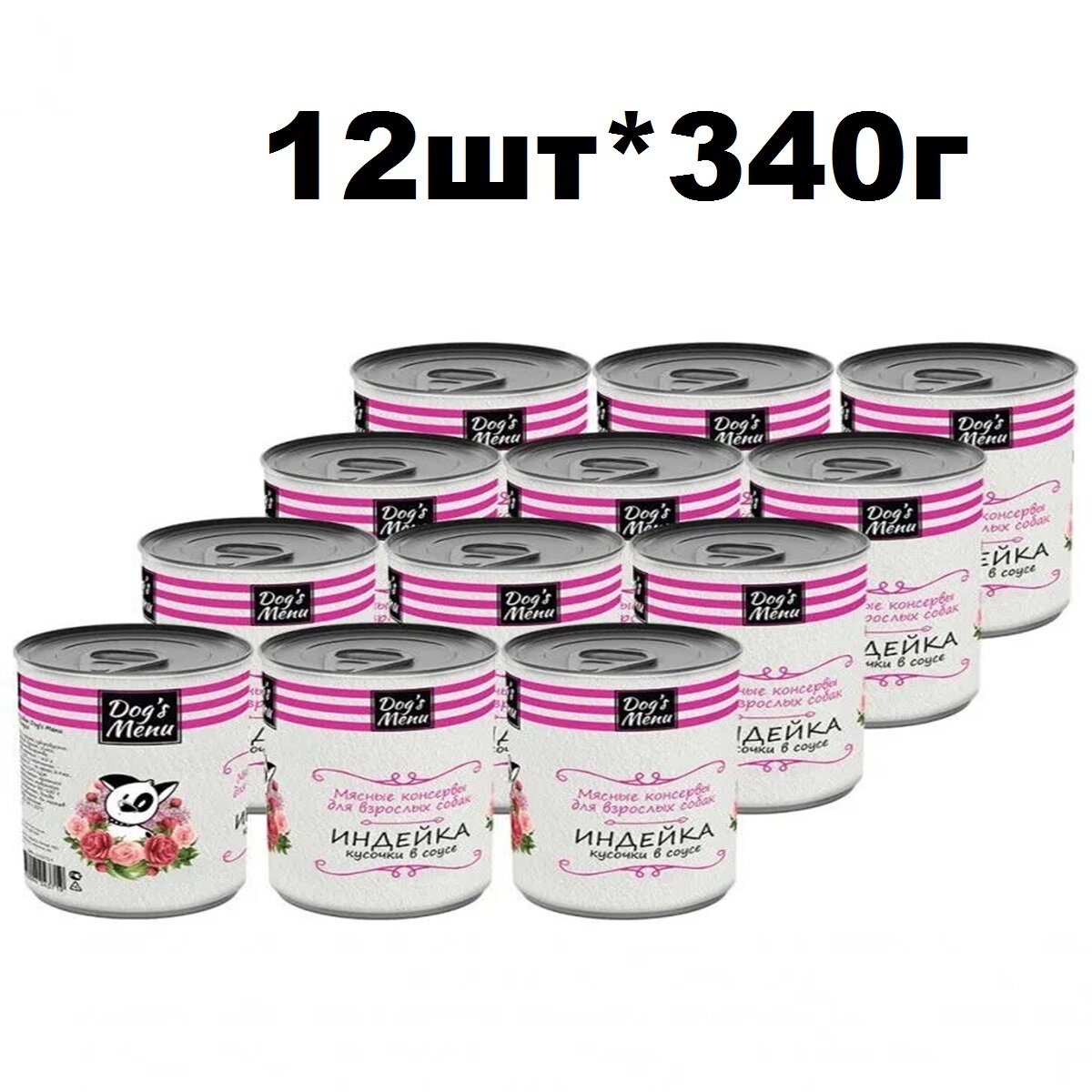 Купить Консервы Догс Меню для взрослых собак с Индейкой кусочки в соусе (цена за упаковку) 340г х 12шт