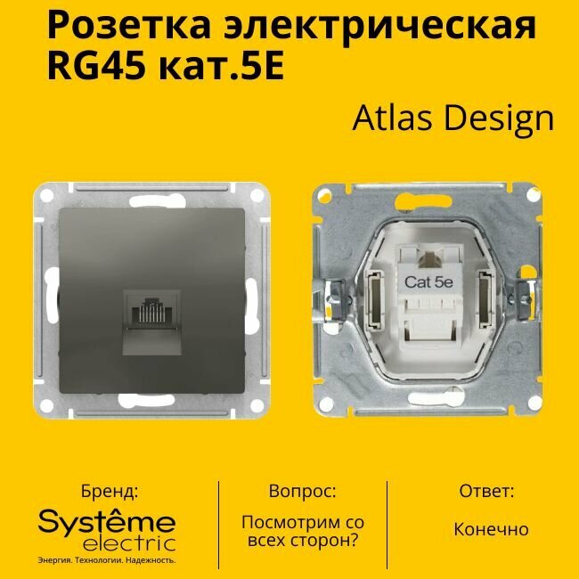 1 шт. Systeme Electric AtlasDesign Жемчуг Розетка компьютерная RJ45, механизм, ATN000483
