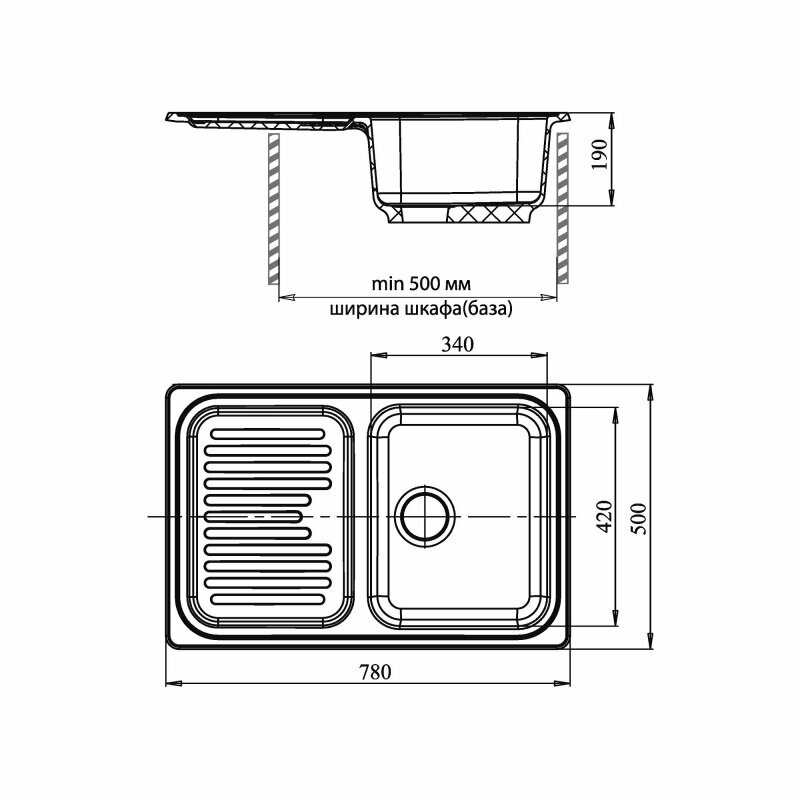 Врезная кухонная мойка 50 см, GranFest Standart GF-S780L, черный