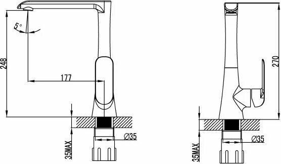 | Длина излива | 177 мм |