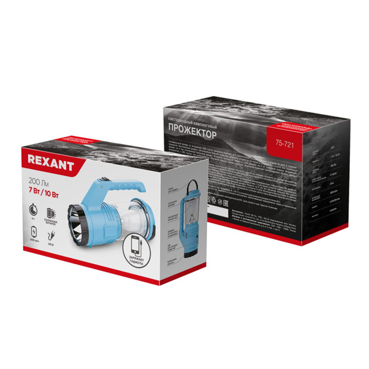 Rexant 75-721 Фонарь туристический/поисковый/кемпинговый с Powerbank, аккумулятор, головной + боково .