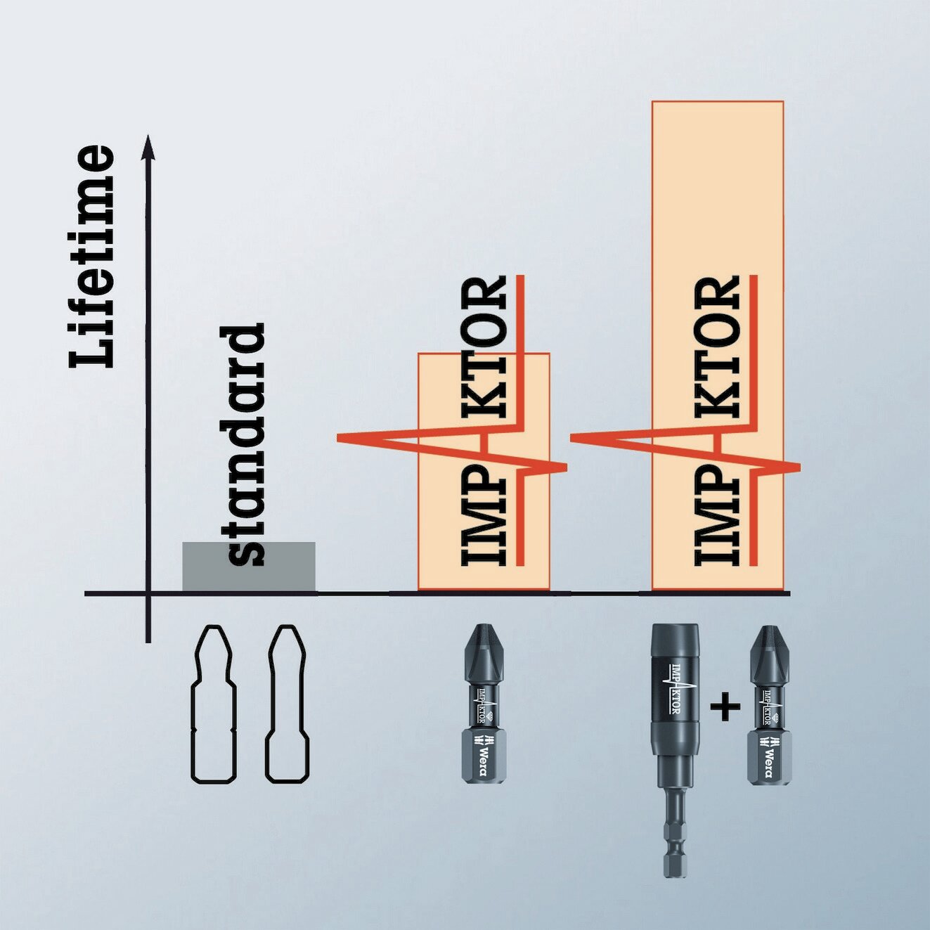 Купить Бита ударная WERA 851/1 IMP DC Impaktor PH, алмазное покрытие, 1/4" C6.3, PH 2 x 25 мм, WE-057616