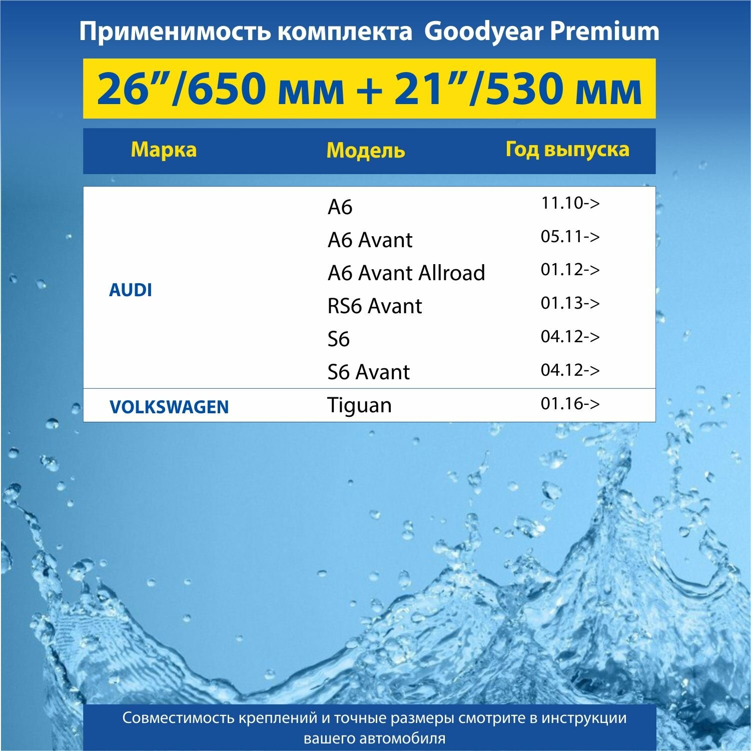 Сохранить2 Щетки стеклоочистителя в комплекте (65+53 см), Дворники для автомобиля GOODYEAR для VW Tiguan II, Teramont (16-), Touareg 3 пок. (18-) AUDI A6, Porsche Cayenne 9YA (17-) интересное: