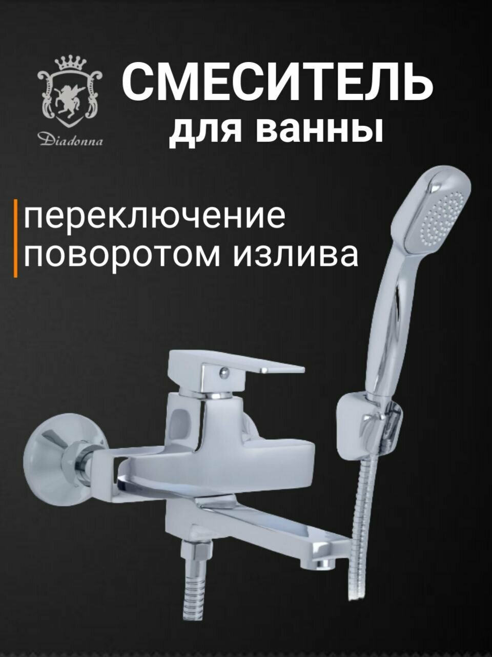Смеситель для ванны, для душа с лейкой хромированный Diadonna D80-330106