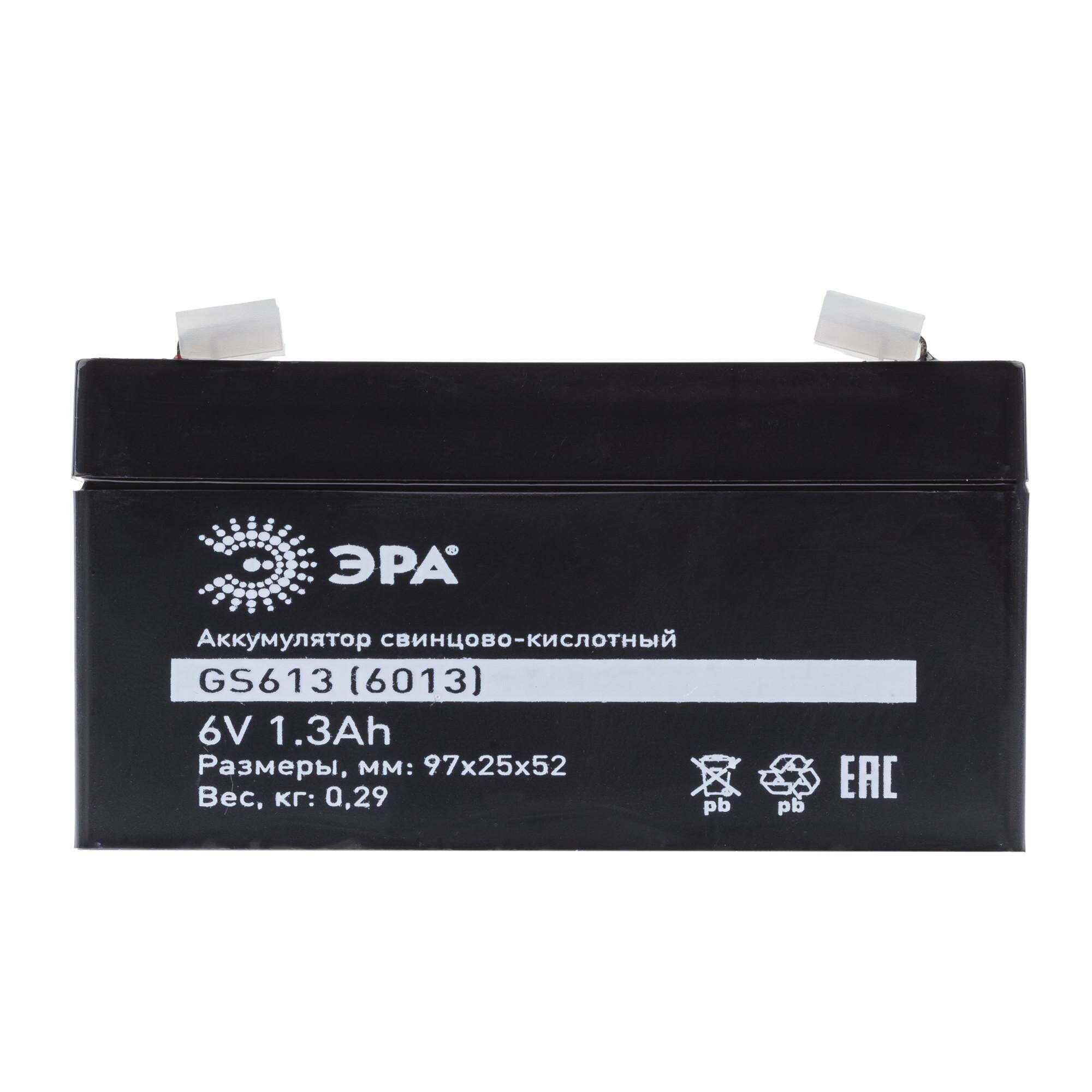Аккумулятор ЭРА GS613 (Cвинцово-кислотный 6V 1,3) арт. Б0050079 (1 шт.)