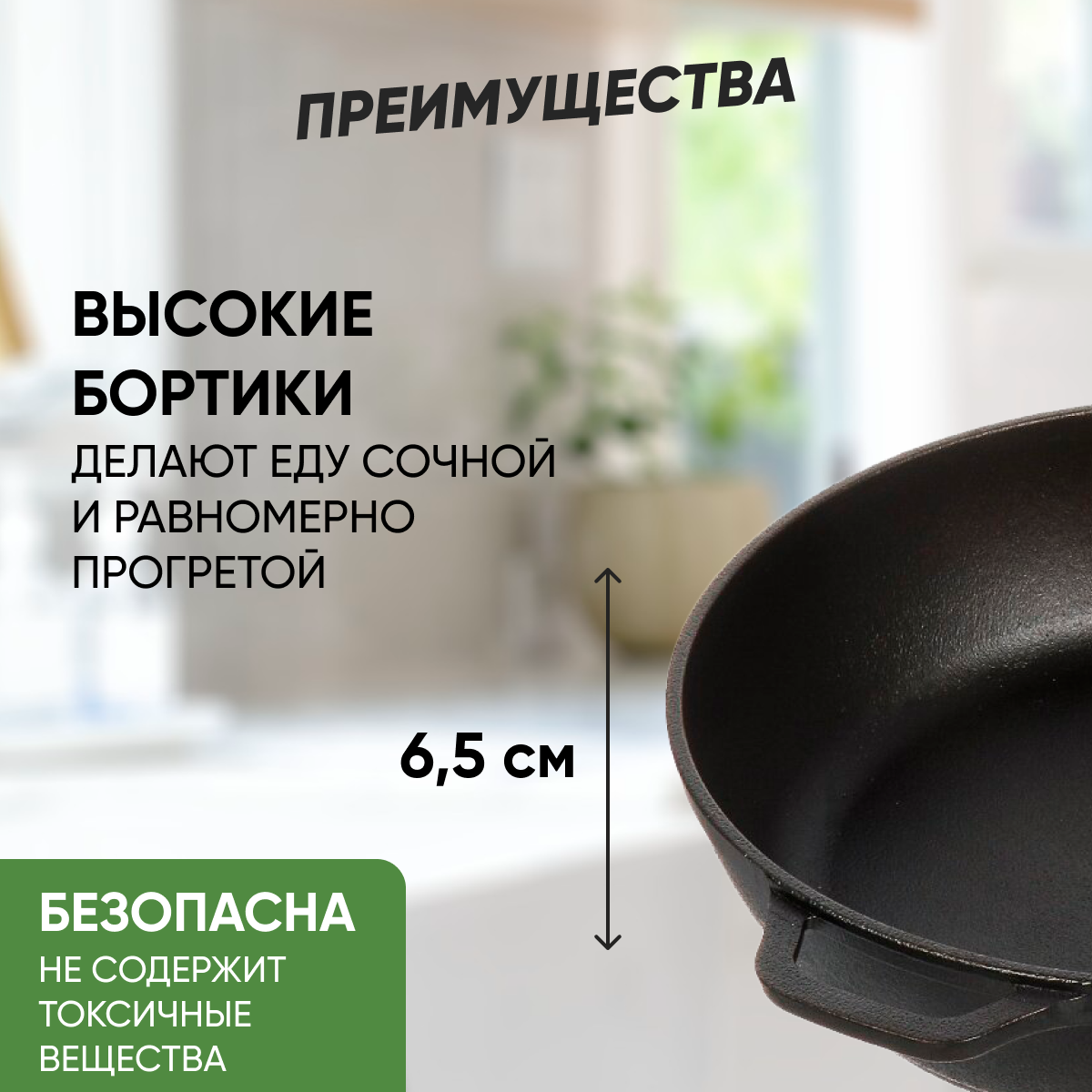 Сотейник чугунный Гардарика со съемной ручкой, д.26см, экологически чистый материал