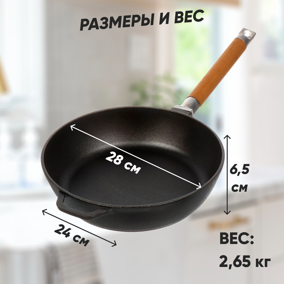 Сковорода чугунная Гардарика 0228 28см,съемная ру .