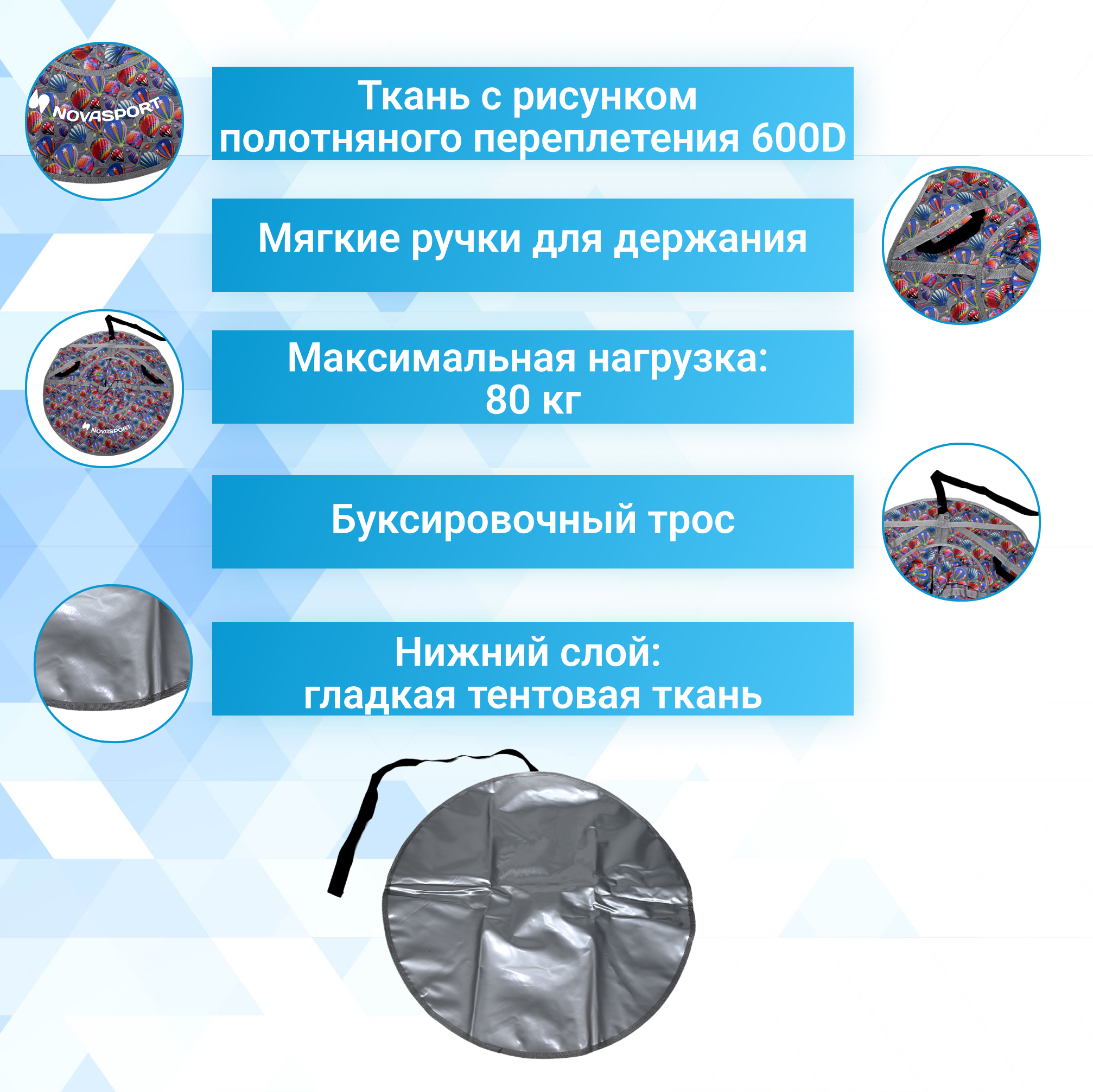 Санки детские надувные ватрушка 90 см NovaSport Тюбинг ткань с рисунком без камеры CH030.090 серые воздушные шары