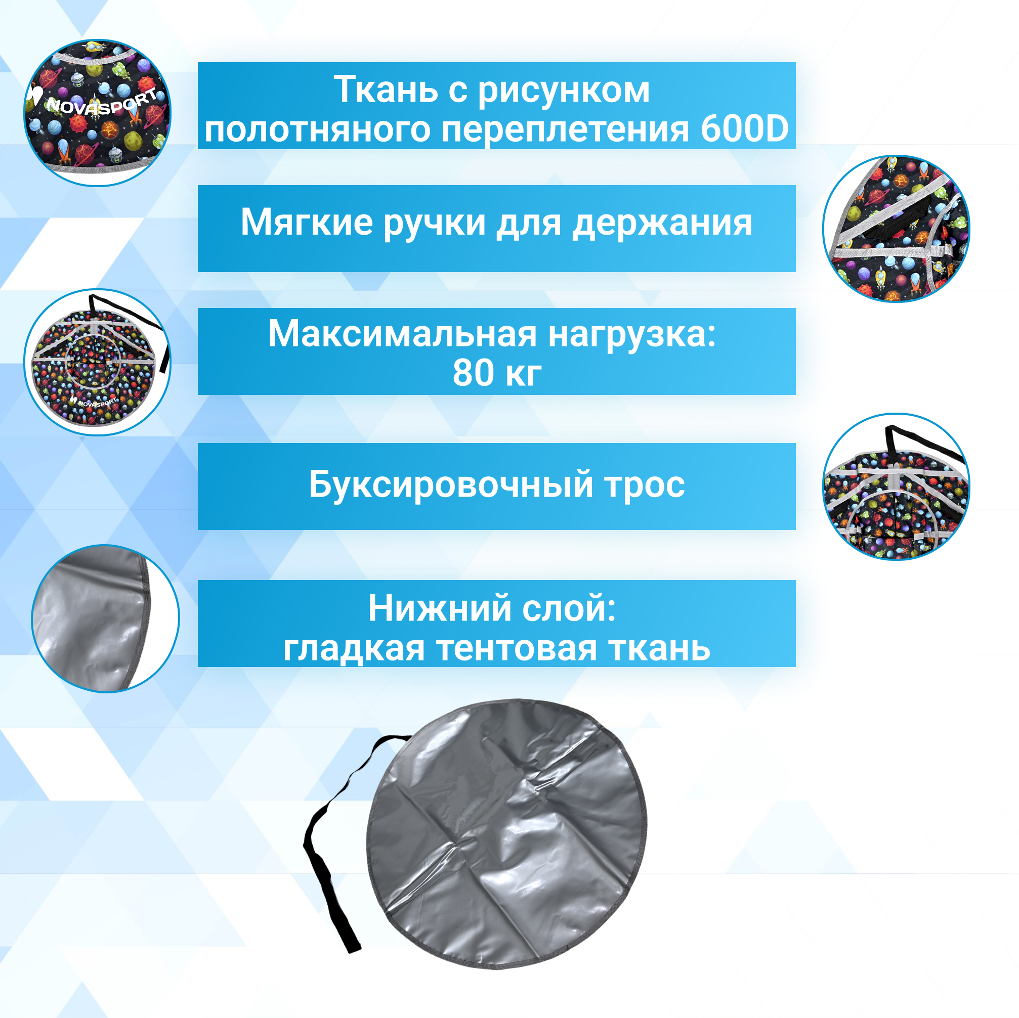 Санки детские надувные ватрушка 90 см NovaSport Тюбинг ткань с рисунком без камеры CH030.090 серые черный космос