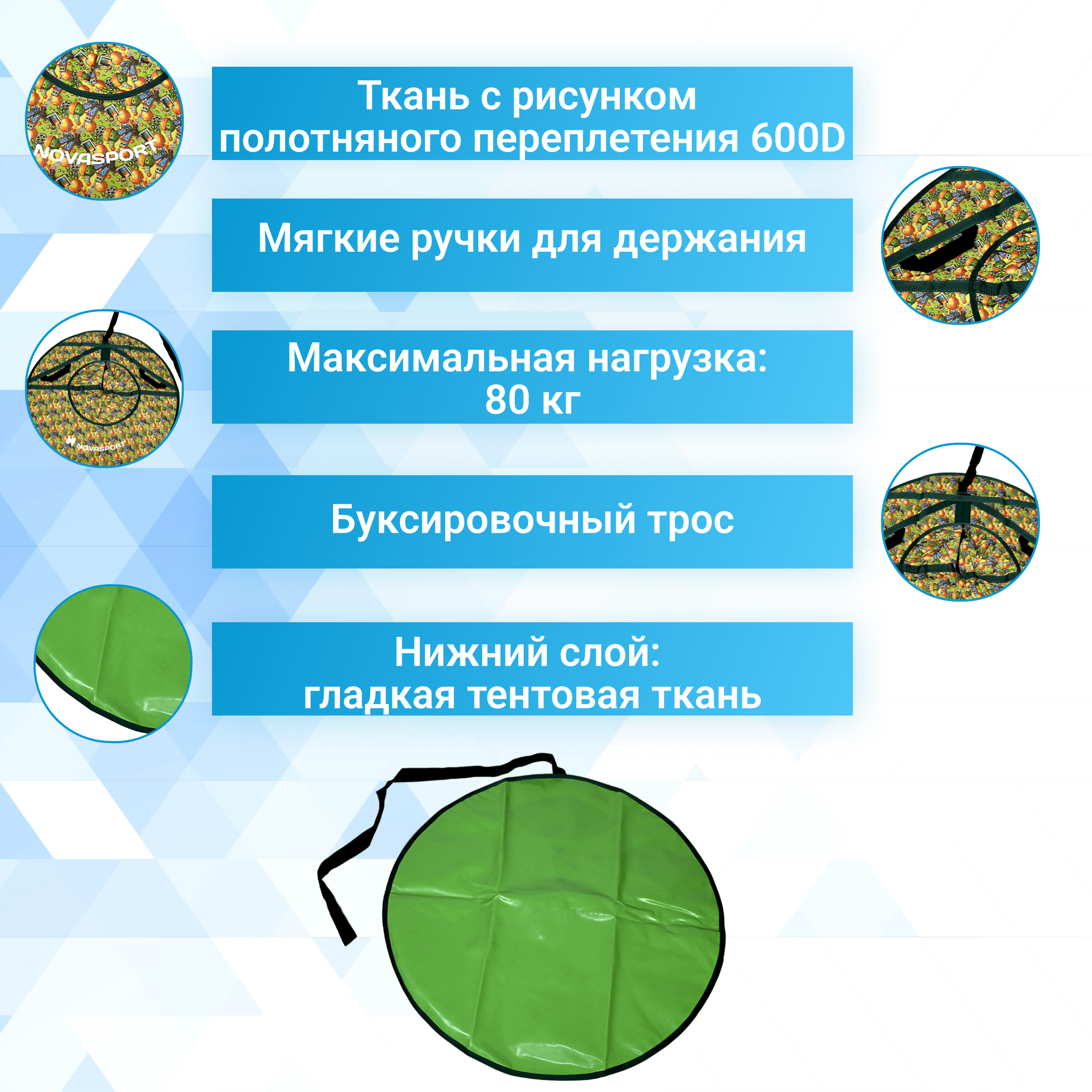 Санки детские надувные ватрушка 90 см NovaSport Тюбинг ткань с рисунком без камеры CH030.090 зелёные смайл