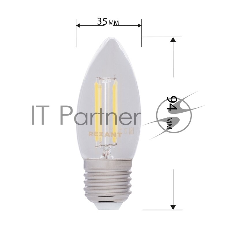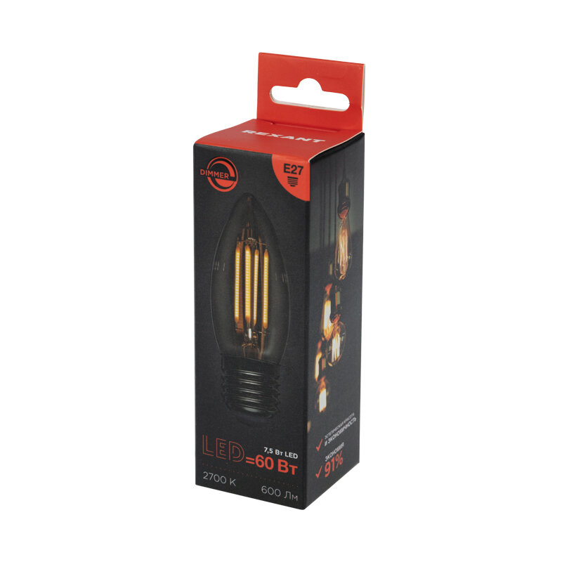 Лампа филаментная Свеча CN35 7,5Вт 600Лм 2700K E27 диммируемая, прозрачная колба REXANT 10 шт арт. 604-089 интересное: