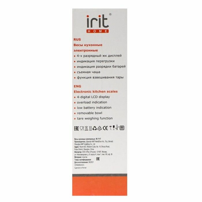 Irit IR-7136 Электронные кухонные весы 5кг 1г, круглые