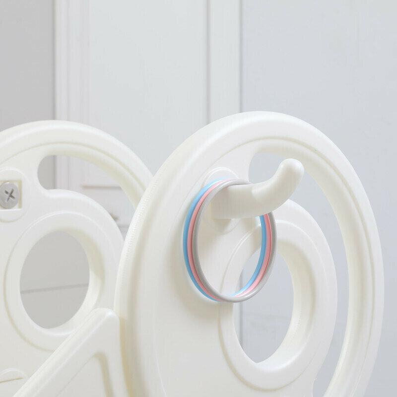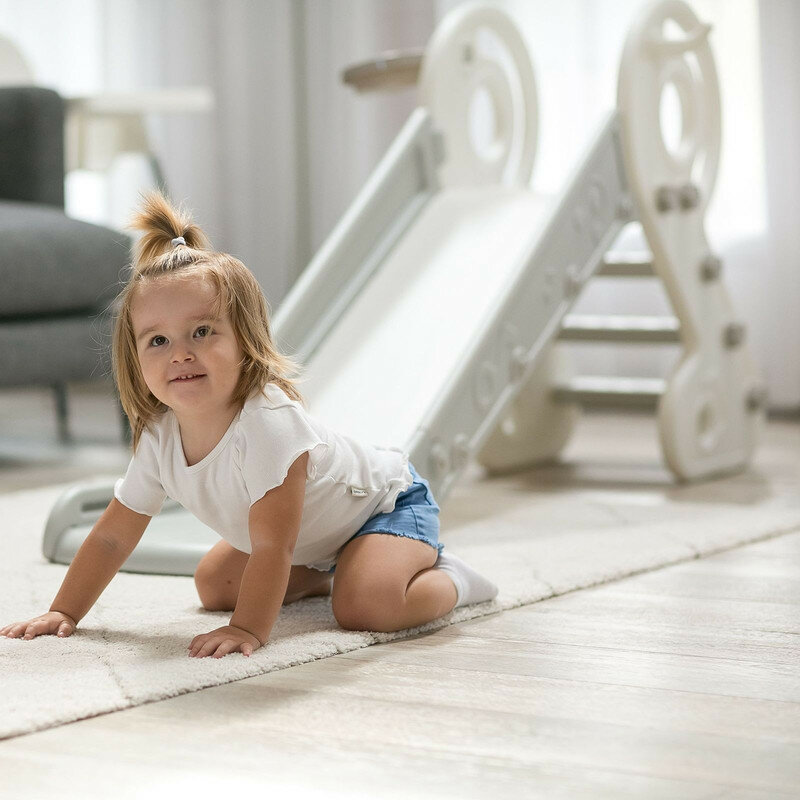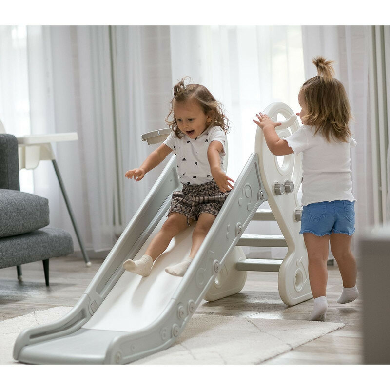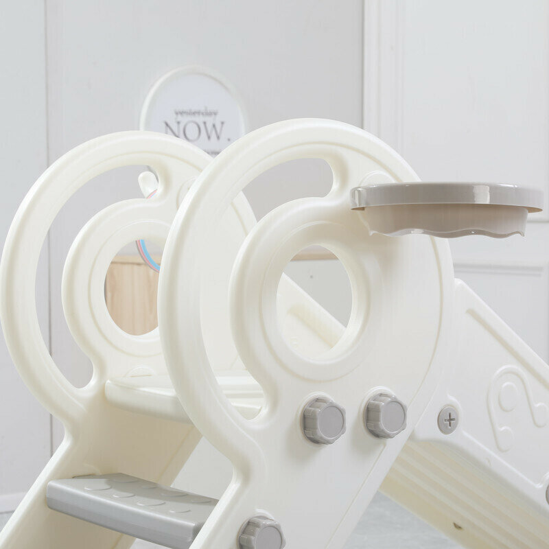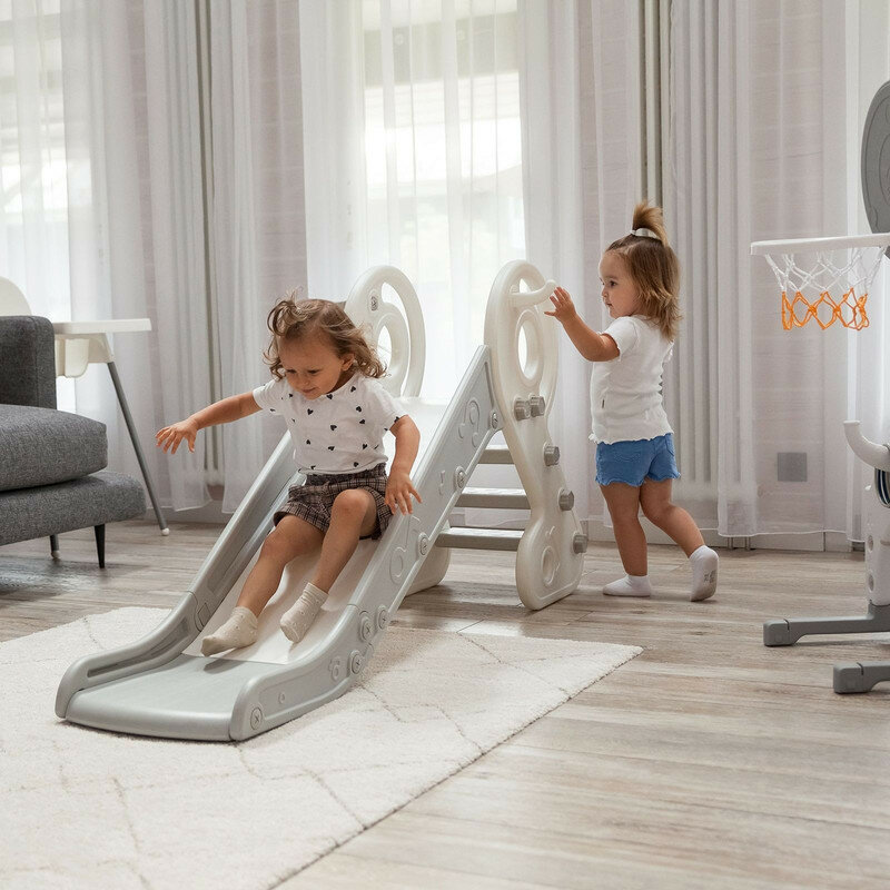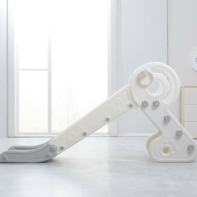 Горка детская UNIX Kids Music Grey, со спуском 136 см, из пластика, с баскетбольным кольцом, серый, белый