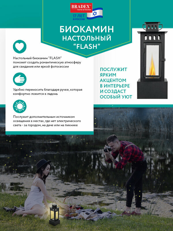 Биокамин универсальный "FLASH", 15x15x38 см, из металла, стекла интересное: