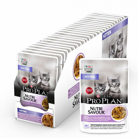 Влажный корм для котят Pro Plan Nutri Savour Kitten с индейкой в соусе, упаковка 26 шт х 85 г
