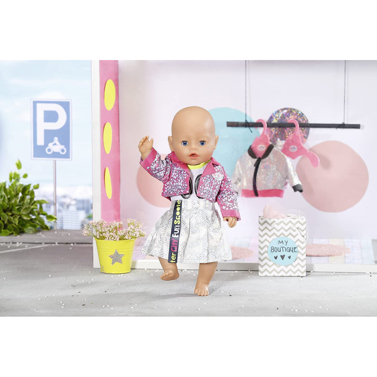 BABY born City Outfit 830222 Zapf Creation Doll Outfit с розовой кожаной курткой, рубашкой и блестящей юбкой, для кукол ростом 43 см