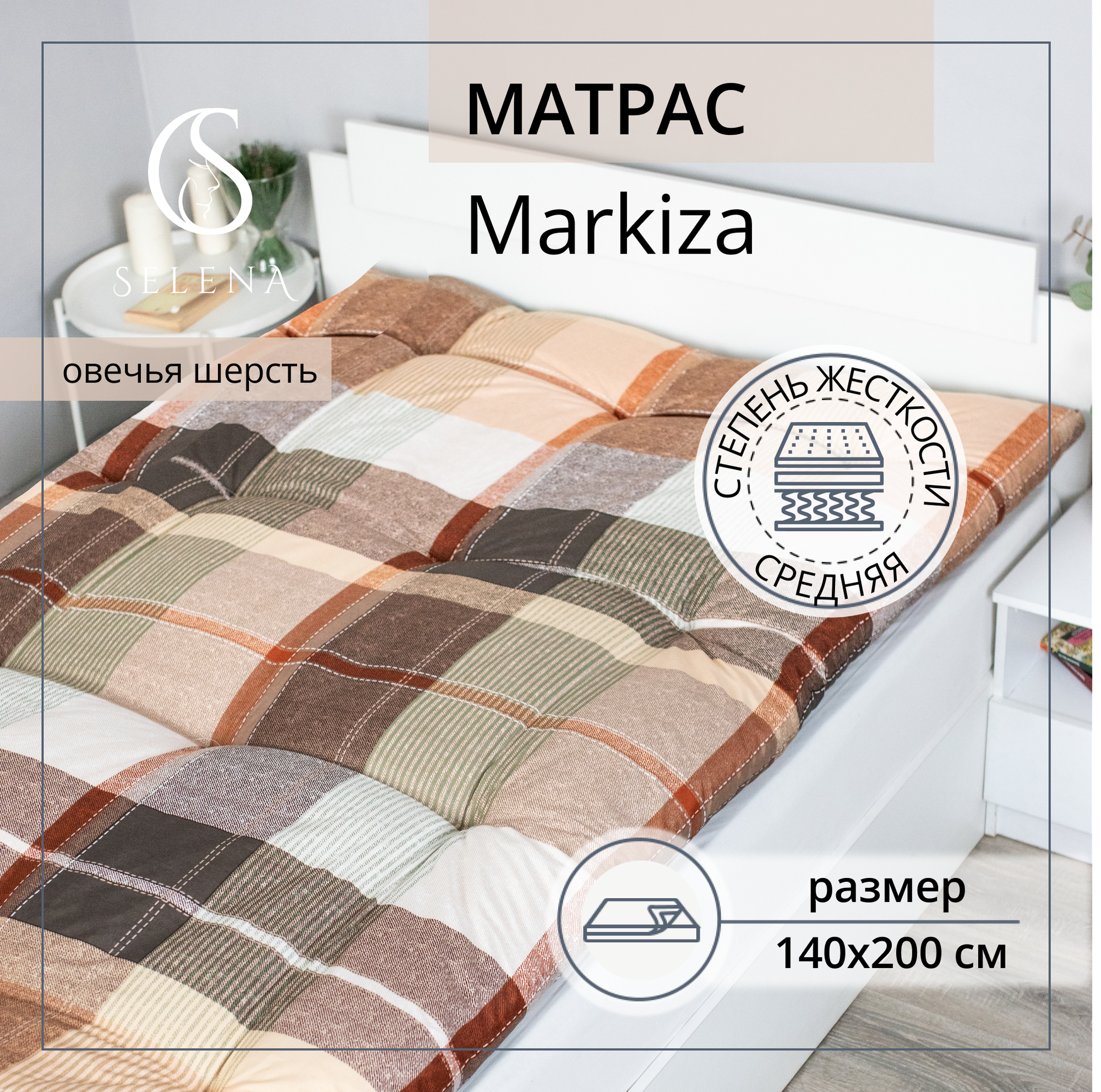 Матрас SELENA, Маркиза, 140х200 см, Беспружинный, наполнитель: Овечья шерсть интересное: