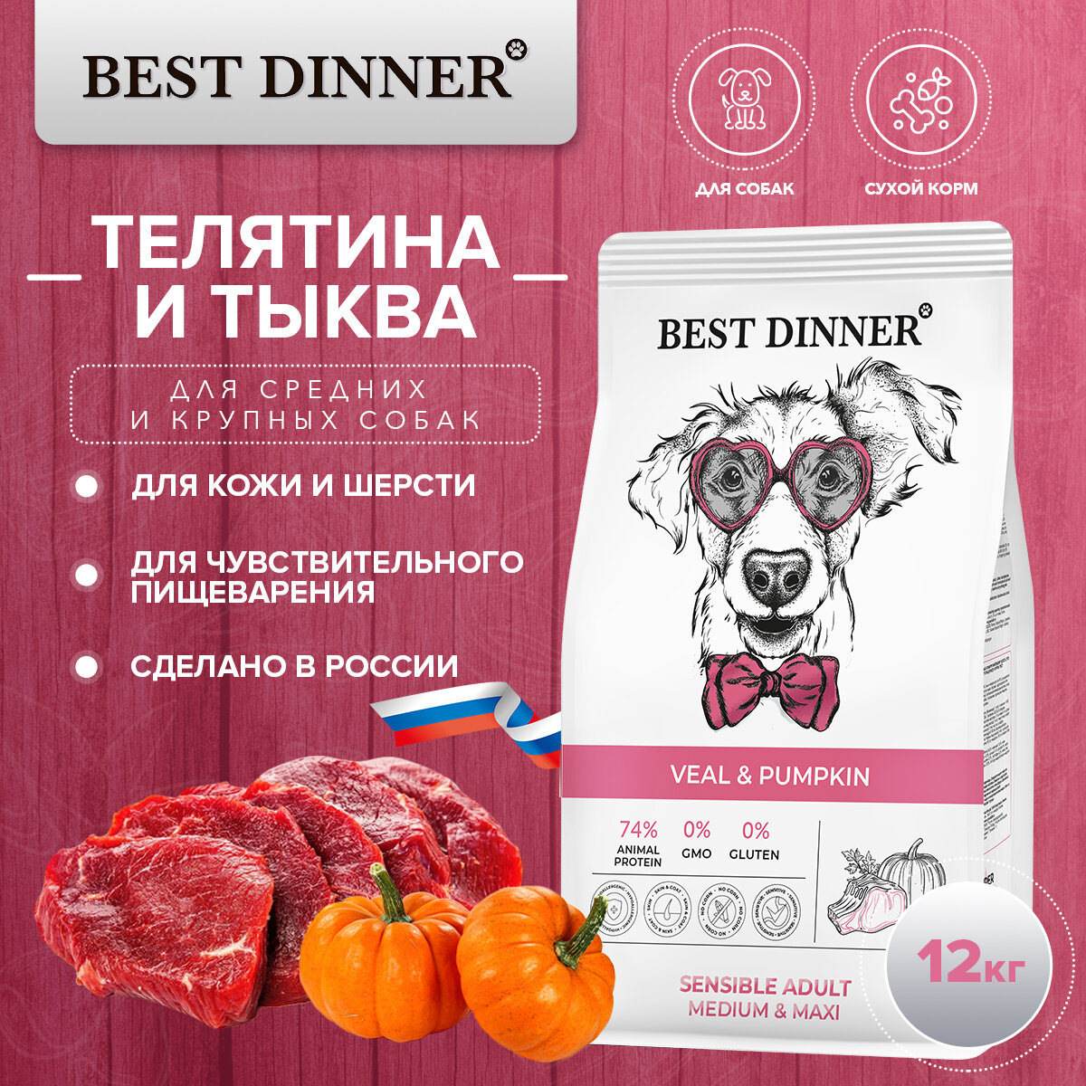 Сухой корм BEST DINNER 12кг для собак средних и крупных пород с Телятиной и Тыквой