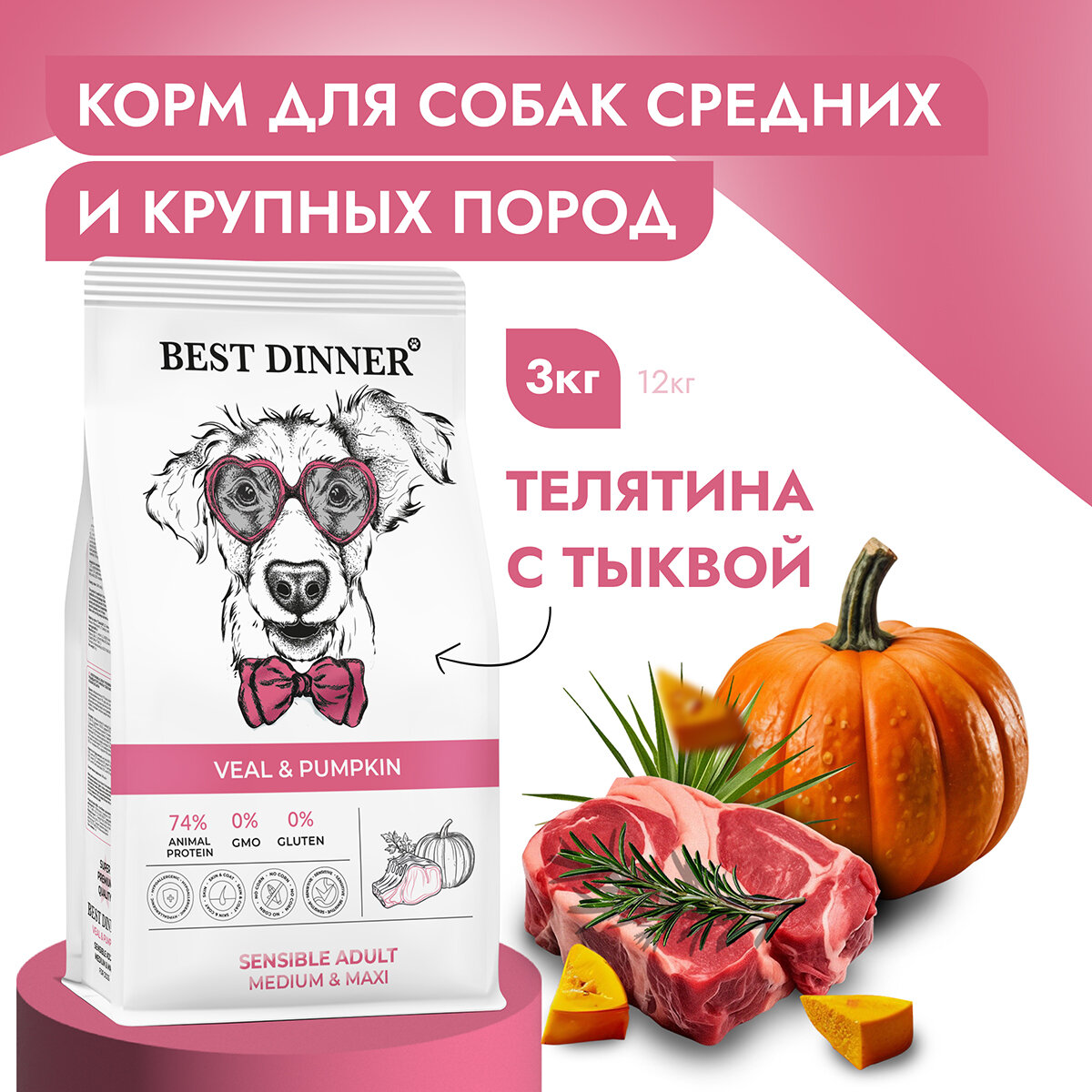 Сухой корм для собак с Телятиной и тыквой Бест Диннер Best Dinner Adult Sensible Medium & Maxi, 3 кг