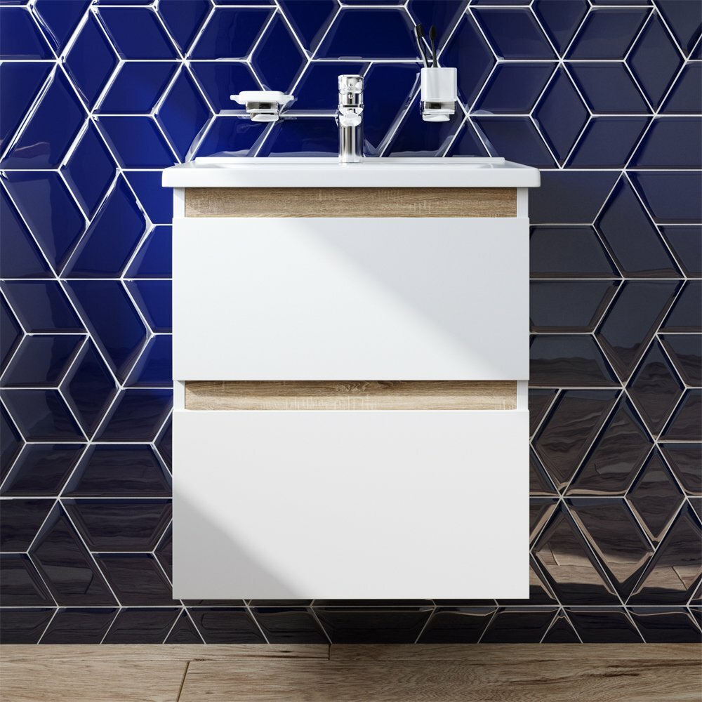 Комплект для ванной тумба с раковиной AM.PM X-Joy M85A-FHX0552-WC0552WG подвесная, влагостойкая 55 см, 2 ящика, белый глянец