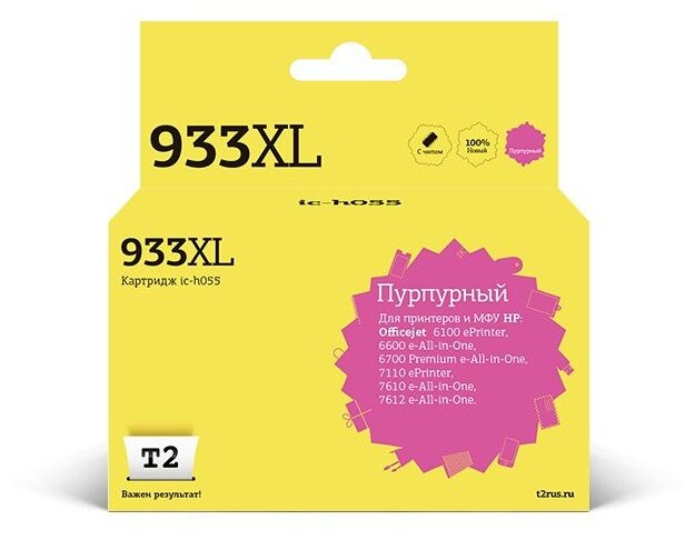T2 Расходные материалы CN055AE 933XL Картридж IC-H055 для HP Officejet 6100 6600 6700 7110 7610, пурпурный
