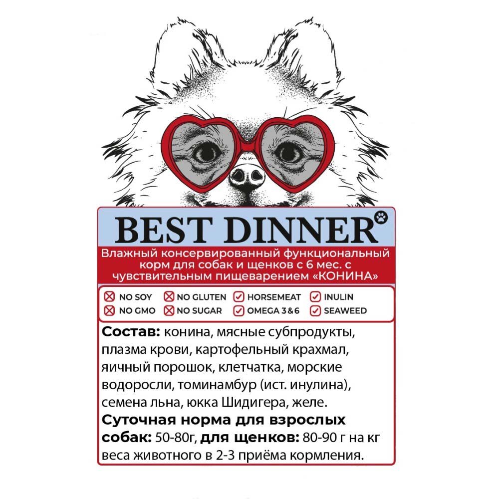 Влажный корм для собак Best Dinner Gastro для чувствительного пищеварения и пищевой непереносимости, конина 340г