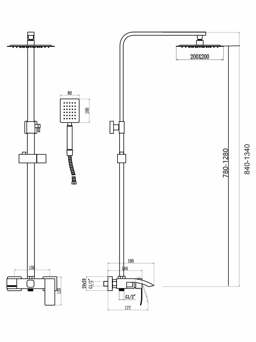 Душевая стойка со смесителем с душевой лейкой (тропический душ) Fmark FS8645-1