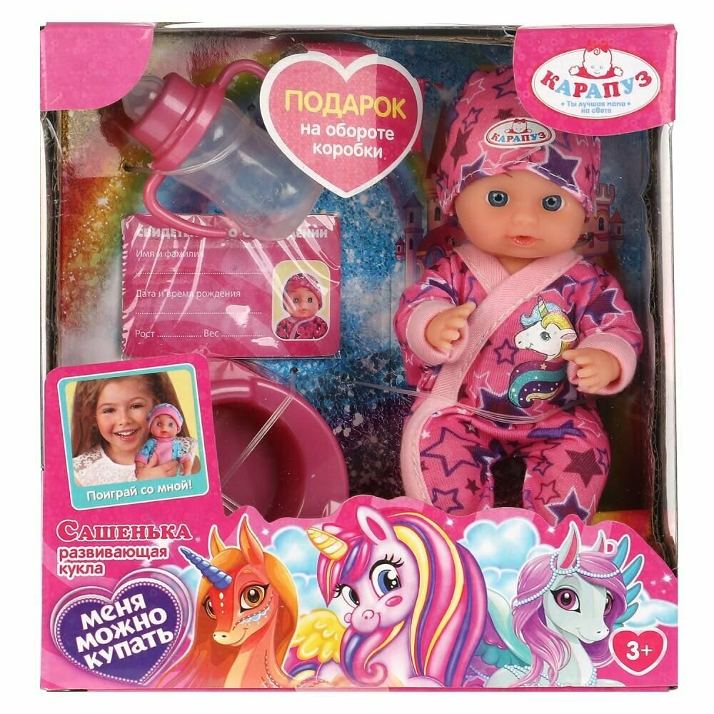 Купить 326491 Пупс без озвучки Сашенька 15см, пьет, писает, горшок, бутылочка карапуз
