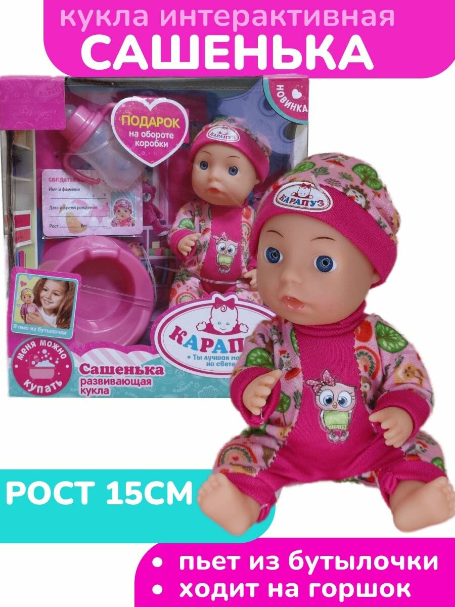 326491 Пупс без озвучки Сашенька 15см, пьет, писает, горшок, бутылочка карапуз интересное:
