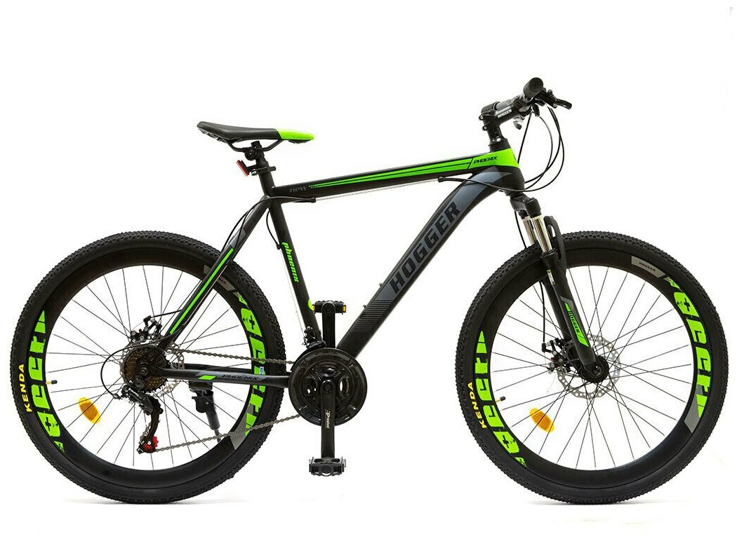 Велосипед 26 HOGGER STRIKE MD, 15 рама сталь, вилка сталь амортизационная, Disk механ. тормоз, 21-скор., зелено-серо-черный интересное: