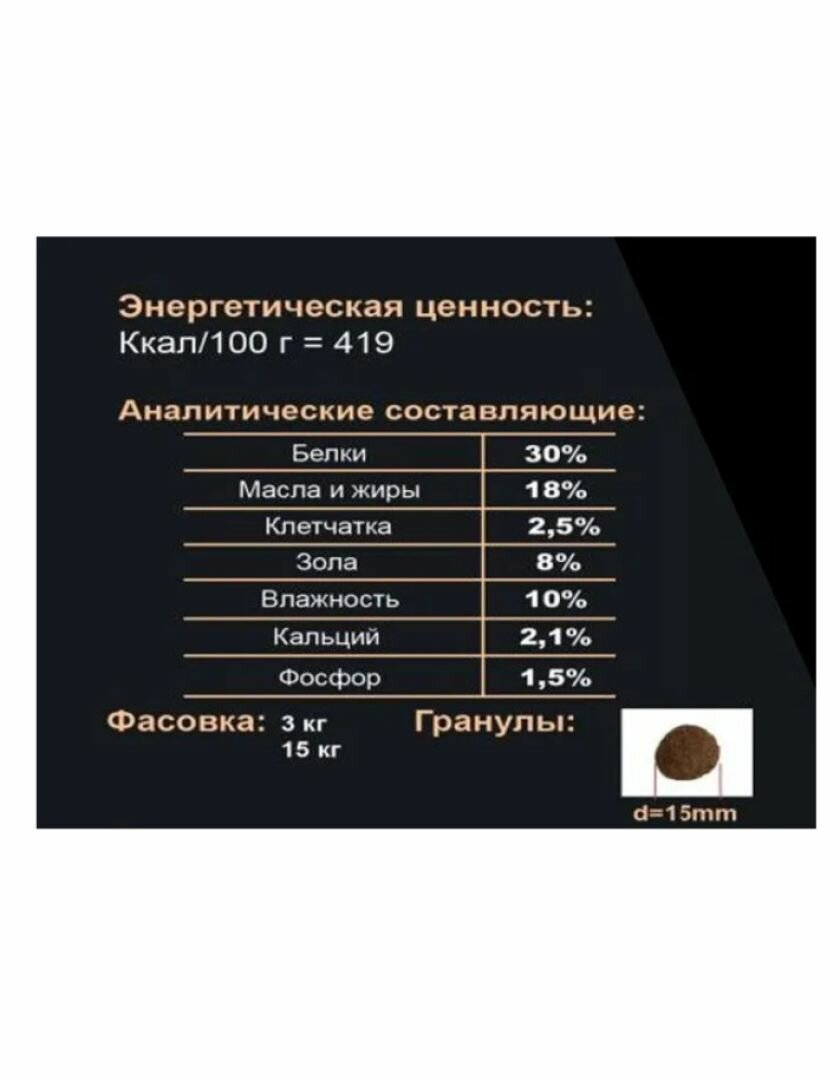 | Пищевая ценность | Белки-30%, масла и жиры-18%, клетчатка-2,5%, зола-8%, влажность-10%, кальций-2,10%, фосфор-1,50% |