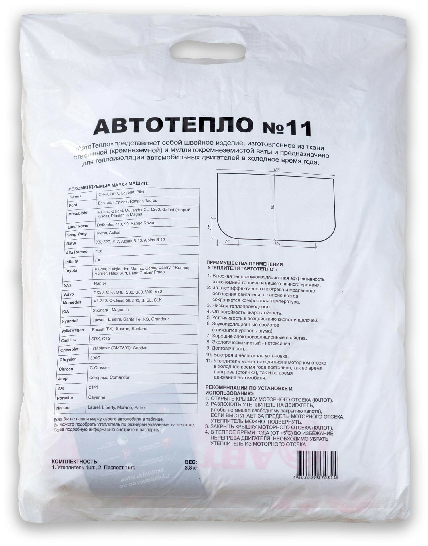 Автотепло Утеплитель двигателя "Автоодеяло №11" (155х90)(УАЗ, Land Cruiser, Sang Yong,Toyota Camry)