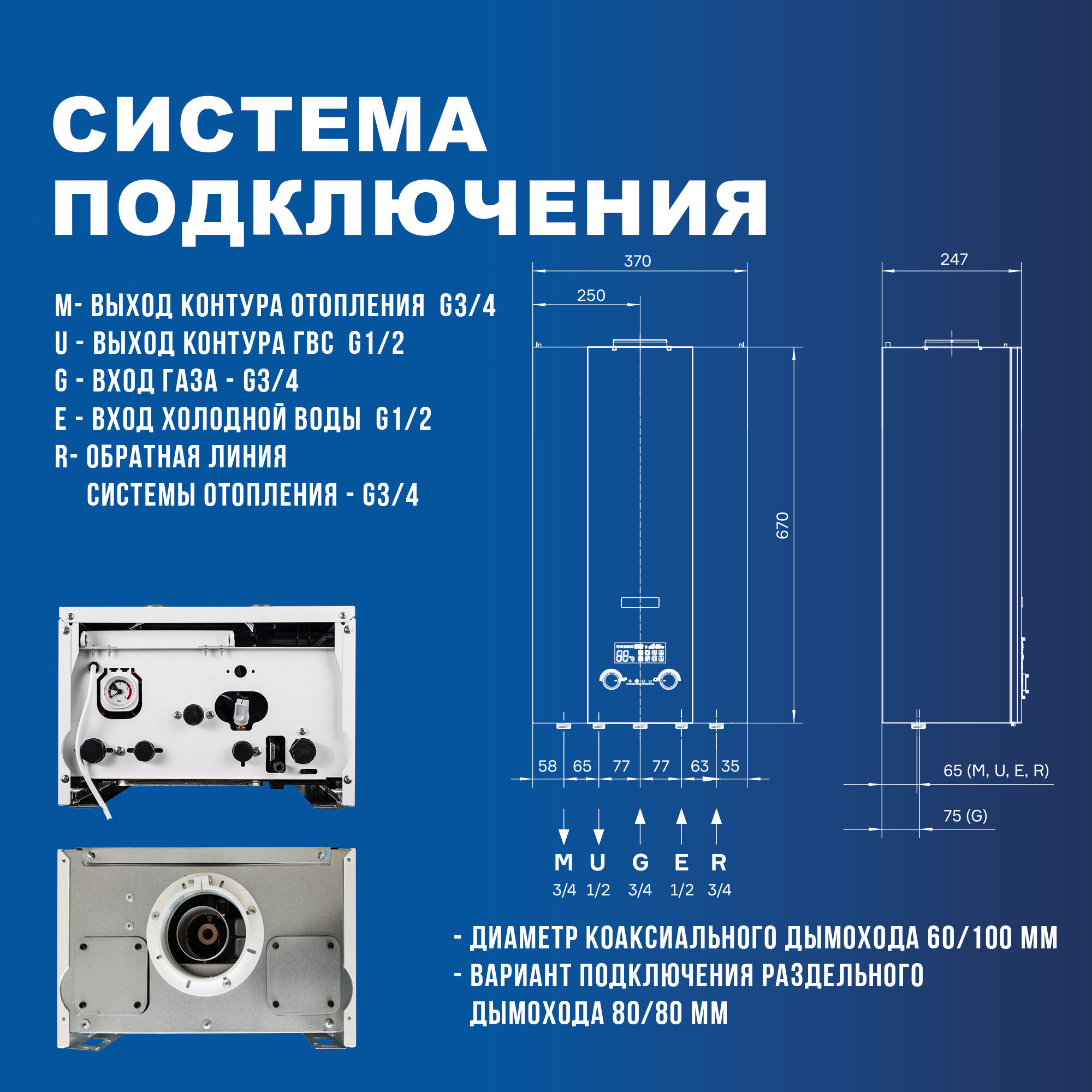 | Диаметр коаксиального дымохода | 60/100 мм |