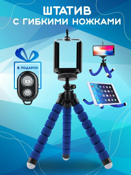 Универсальный гибкий трипод, штатив для телефона, синий интересное: