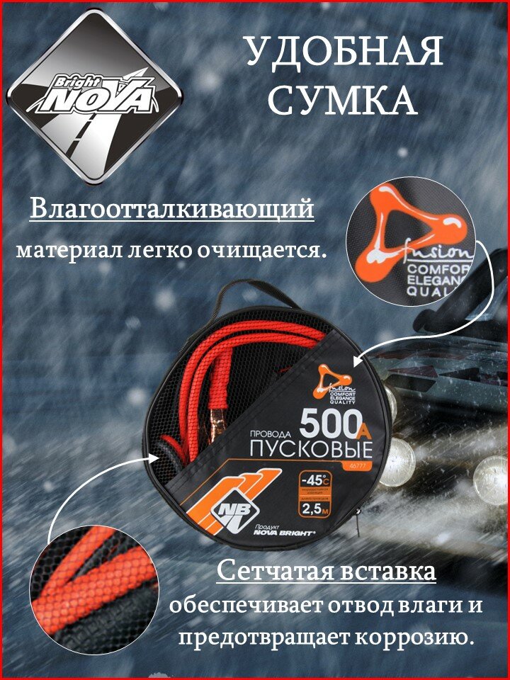 Купить Провода пусковые Nova Bright-fusion 500 А 2,5 м в сумке морозостойкие до -45*С 46777