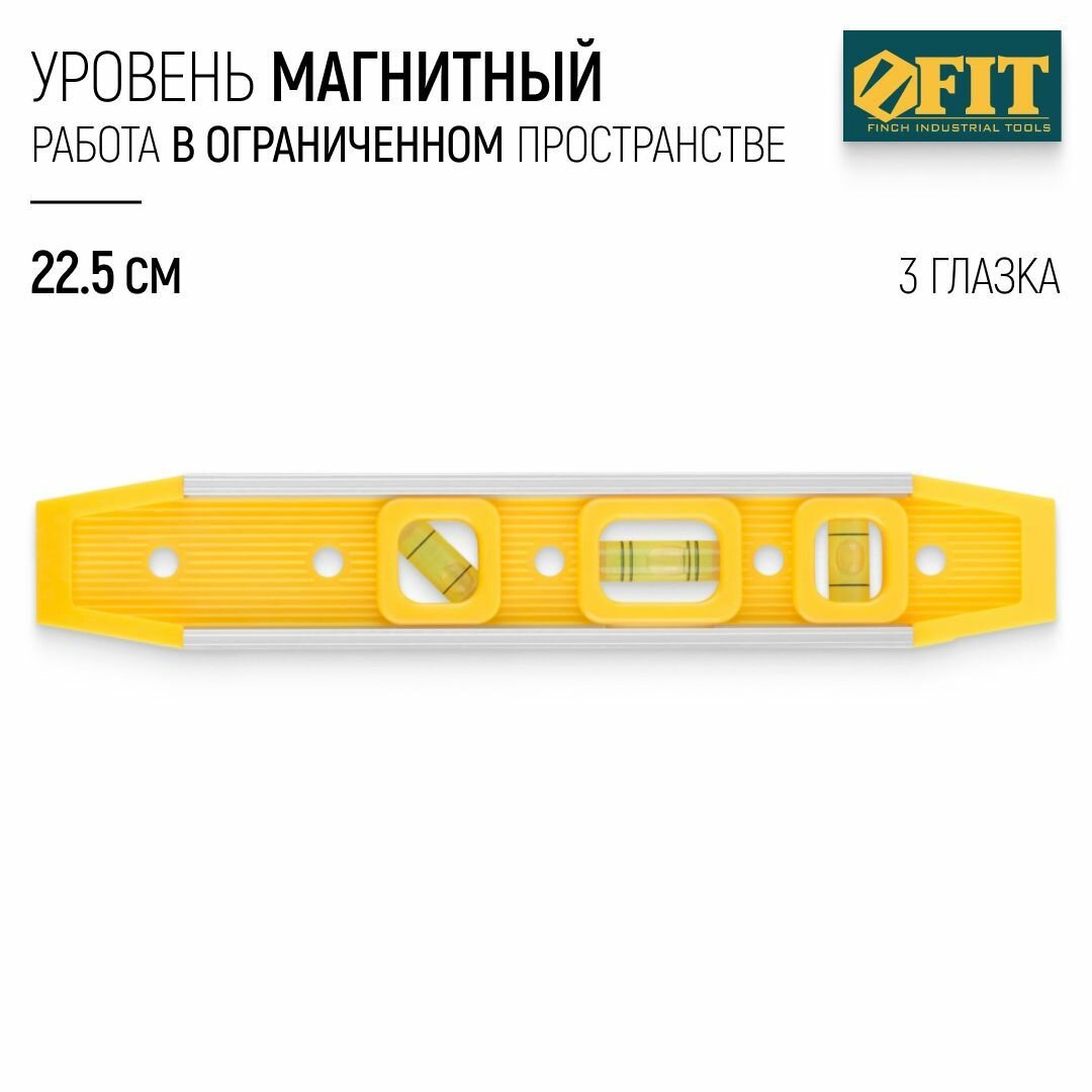 FIT Уровень строительный магнитный 20 см 3 глазка с угломером для работы в ограниченном пространстве