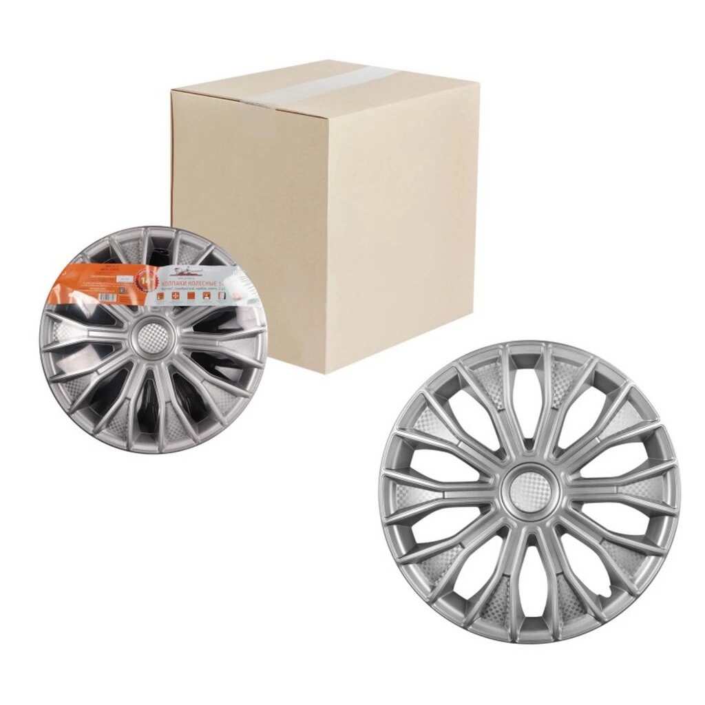 Колпаки колесные 14" "Волтек", серебристый, карбон (2 шт.), Airline AWCC1414