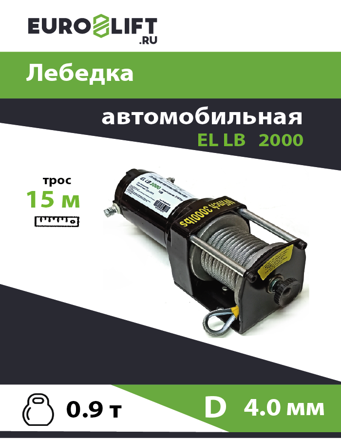 Лебедка автомобильная Euro-lift EL LB 2000 с тросом 15 метров и тягой 907 кг, 12 В интересное:
