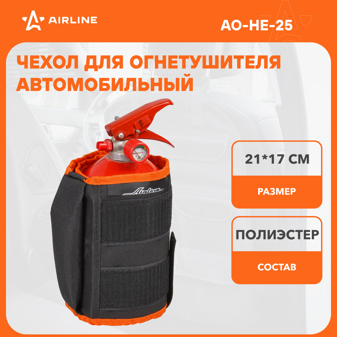 Чехол-фиксатор для огнетушителя (ОП-1-ОП-5), автомобильный, полиэстер, черн./оранж. AO-HE-25 AIRLINE интересное: