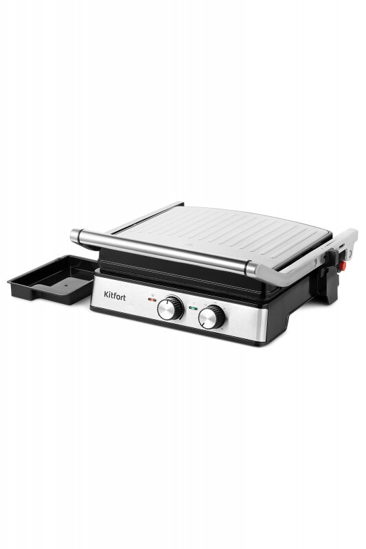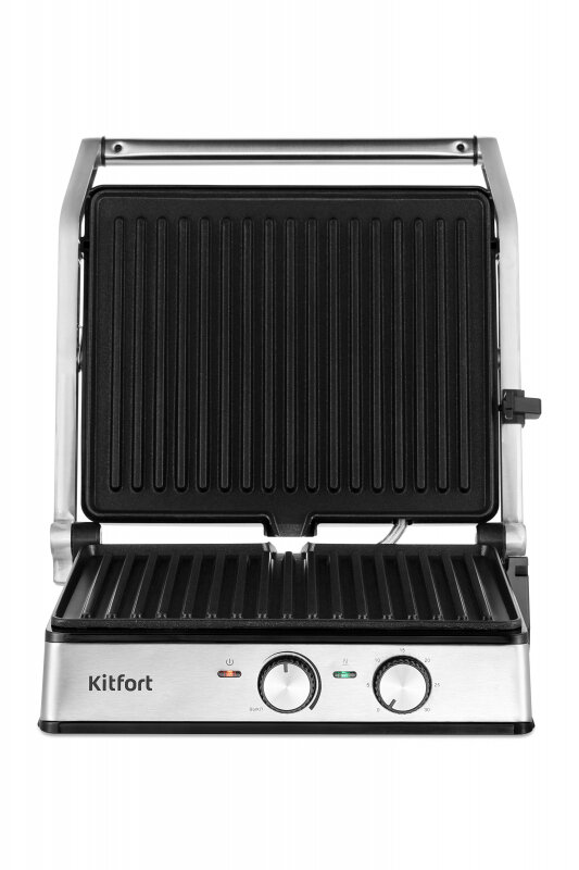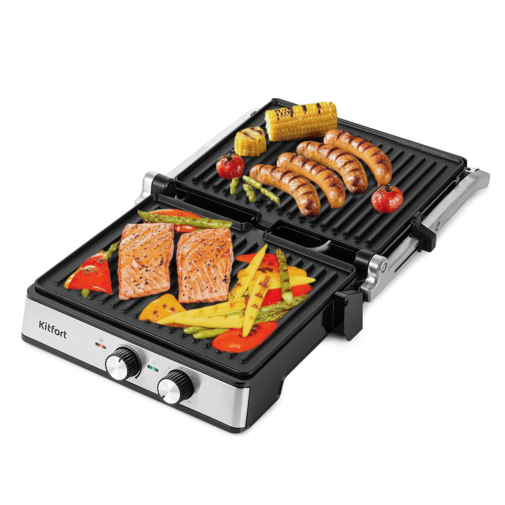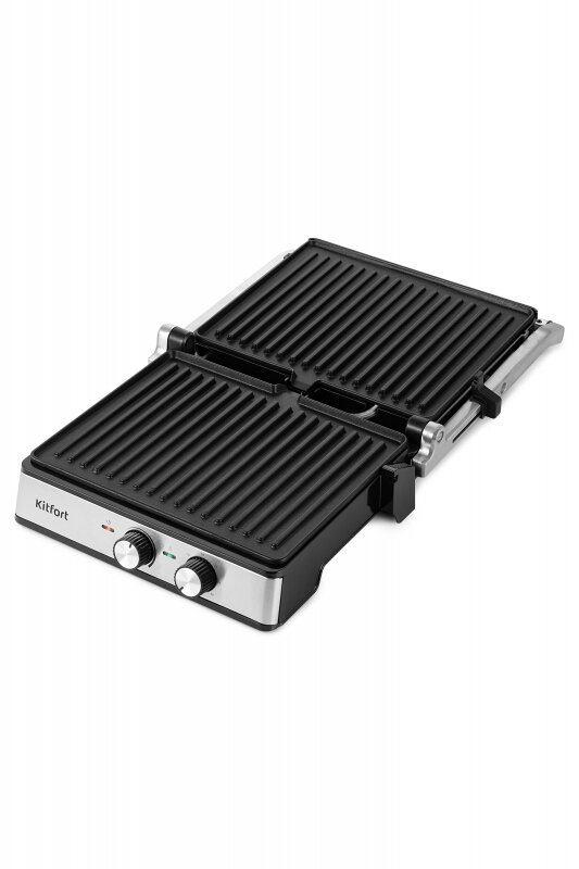 Гриль электрический Kitfort КТ-3601, 2000 Вт, антипригарное покрытие, 29х24 см, серебристый
