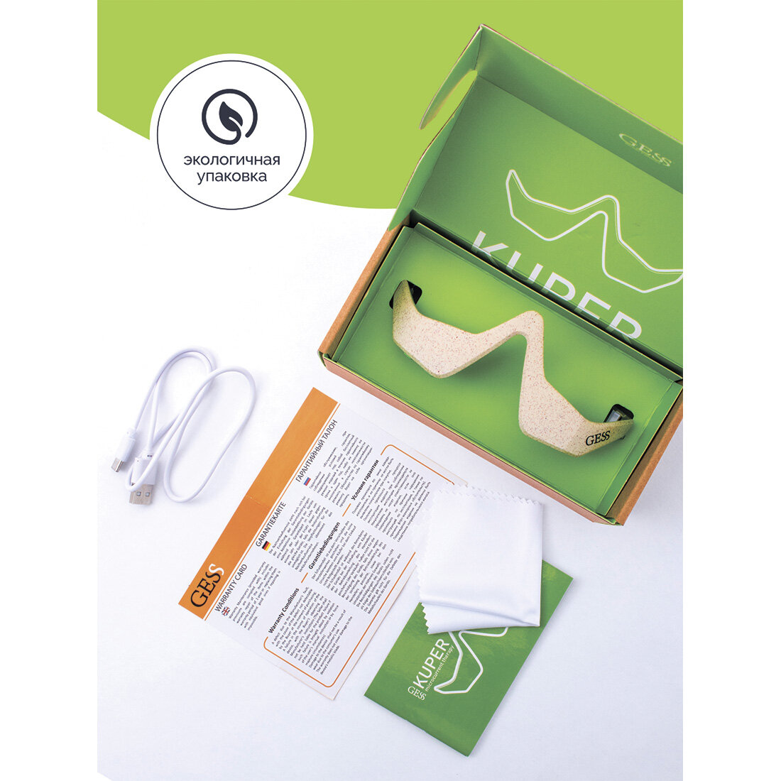 | Комплектность | KUPER Микротоковый массажер для лица и глаз в виде очков. USB-кабель. Инструкция. Гарантийный талон. Картонная коробка. |