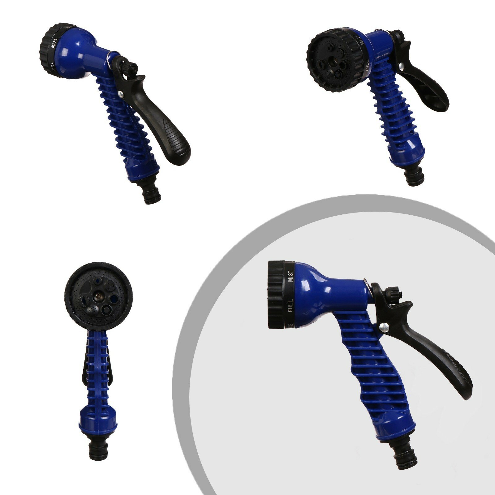 Чудо-шланг, латекс, L = 2.5 — 7.5 м, 2-слойный, нейлоновая оплётка, распылитель 7 режимов, переходник 12 мм (1/2"), 19 мм (3/4")